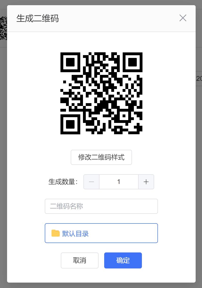 在弹窗中设置二维码样式、数量、名称以及目录分类。